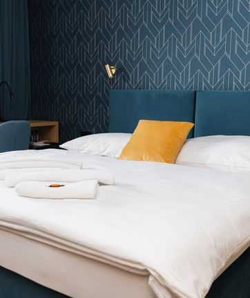 Dôležitou súčasťou návrhu bola multifunkčnosť. Izby umožňujú variabilitu lôžok – postele je možné ponechať oddelené alebo ich spojiť do plnohodnotnej manželskej postele. Tomu je prispôsobené aj osvetlenie: každé lôžko má vlastný svetelný komfort, ktorý funguje samostatne aj pri spojení postelí. Výsledkom je moderný, svieži interiér, ktorý zároveň spĺňa súčasné nároky na estetiku aj flexibilitu ubytovania.